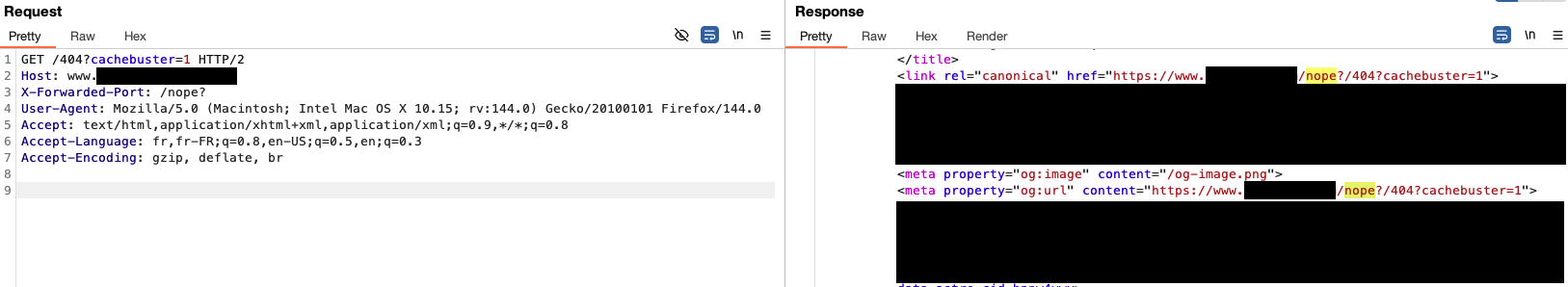 As mentioned earlier, a security advisory was published last month regarding the X-Forwarded-Host header. After finishing the writing of this paper, which required diving back into the specs to properly source everything, we decided to take a closer look at the patch for the CVE-2025-61925. The patch was bypassed in five minutes flat. It goes to show that sometimes it’s just a matter of timing: having the right details freshly in mind, along with the perfect situation to put them into practice.