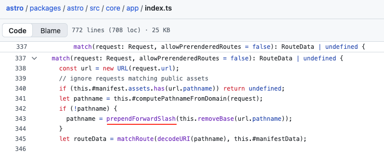 This is where our payload becomes truly useful, allowing us to specify a path without a slash (/), while still maintaining a valid URL for the Astro router and the WHATWG parser (excuse this abuse of language). Being considered valid by the URL parser is obviously not enough, because the router’s regex must match in order to land on the desired route, and the router expects it to start with a slash :