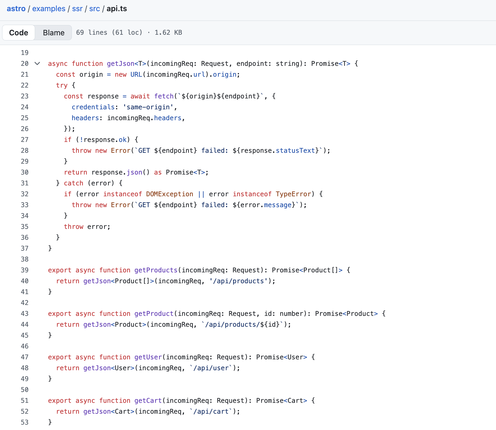 Example code from Astro’s SSR app template is vulnerable: it reuses the request’s origin and concatenates it to the API endpoint, ${origin} being equal to the protocol+host+port provided as the value of the x-forwarded-proto header :